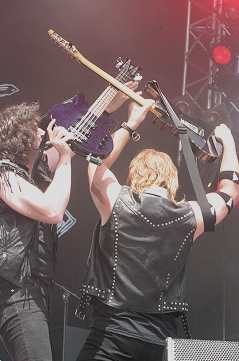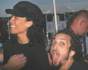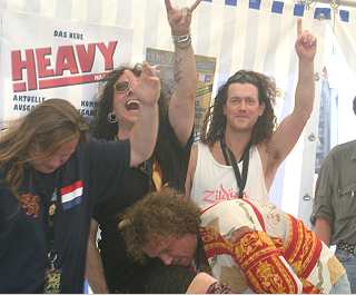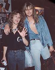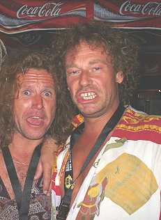 Vengeance, London 1990 Leon Goewie & Arjen Lucassen PS.: das blaue Auge hatte sich Leon selbst verschuldet damals... :-))) PS.: von mir hat er's aber nicht kassiert gehabt... (c) www.musicmirror.de |