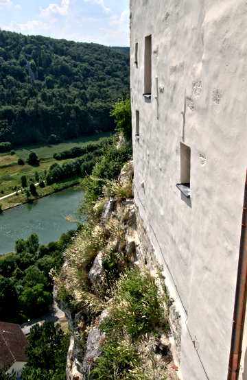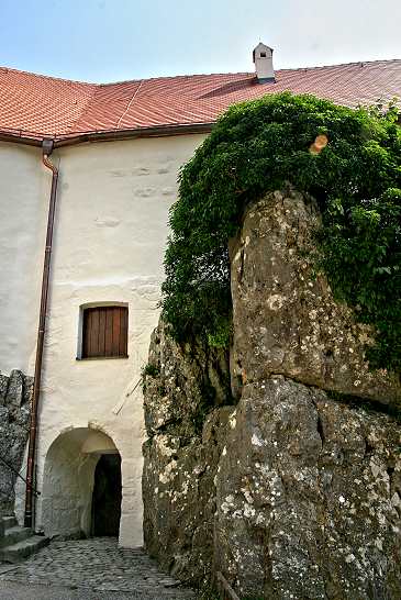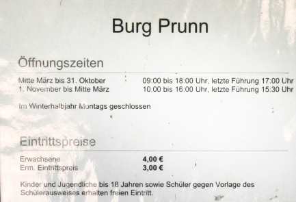 der (ehemaligen) Vorburg ist sie durch einen tiefen Halsgraben abgetrennt. Though most of the buildingsite is rated to an early New Age, Prunn shows a unique and complete picture of a knighthood castle. For defense it is situated perfectly on a lime rock and dominates the Altmuehl Valley. It is surrounded by a deep moat |