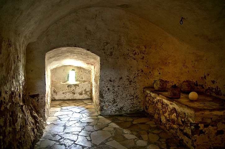 Felsen mit dem Berghang verbindet. Durch die Torhalle kommt man in den