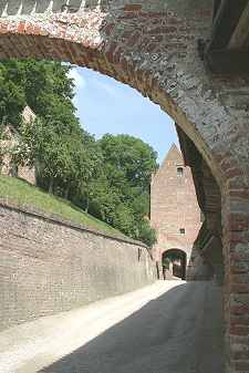 Befestigungsanlagen passieren, bis er über die Brücke des Torbaus den