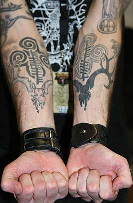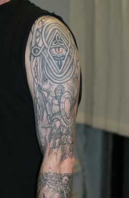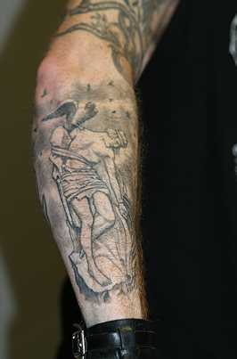 Stunden warten muss....... Zum Beispiel mit einem kleinen Photoshooting in Sachen Tattoos. Die Stories zu diesen Gemälden könnt Ihr übrigens im nächsten Metal Hammer Heft nachlesen inkl. Bilder versteht sich.... (3x dürft Ihr raten zu welchem dieser hübschen Boys da oben diese Hautbilder gehören?? ) The Question is, what to do and how to spend these 5-6 hours now 'till we are allowed to go on stage? For instance with a little photoshoot of these phantastic tattoos. The storis to these paintings you find in the next issue of german Metal Hammer, including of course these pictures here... ( 3x times you may guys who of the boys above is the owner of these tattooes?! |