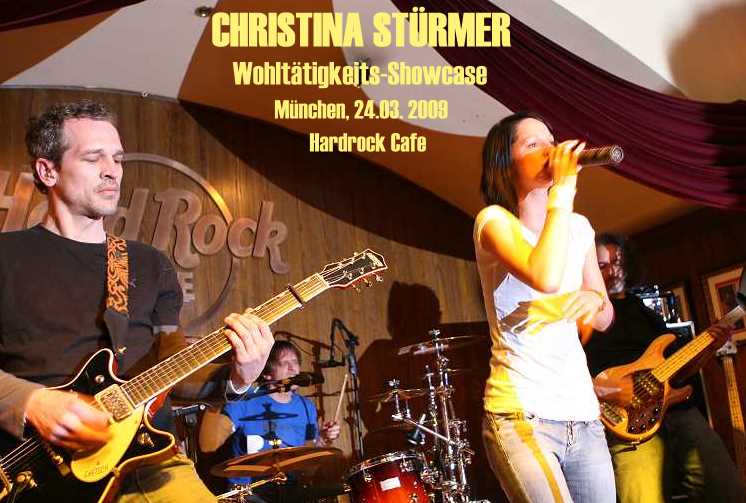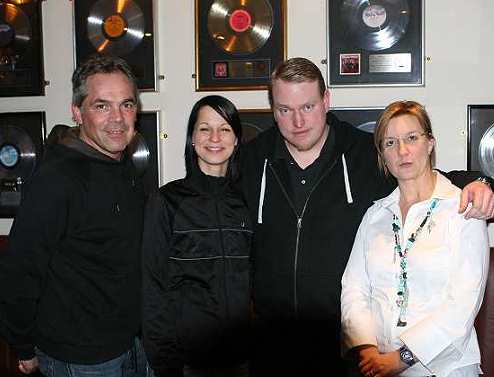 Christina mit ihren Manager-Presseleuten, sowie Heidi Denzler, Managerin vom Münchner Hardrock Cafe