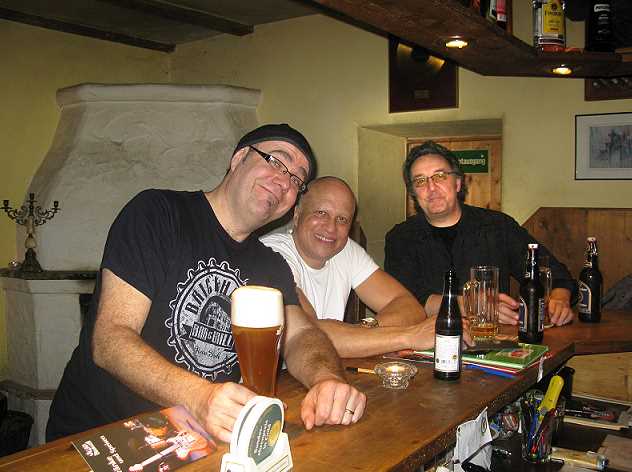 from left to right Greg Koch, Del Bennett (Drums) & Tom Good (Bass) These Americans seem to like our bavarian beer