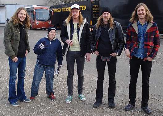 Die Schweden Metaller mit ihrem jüngsten Fan Stefan,12