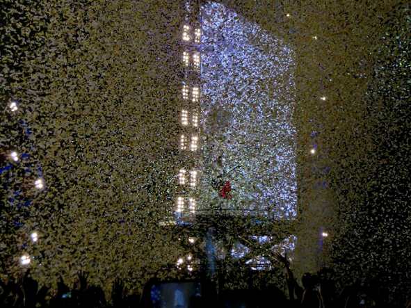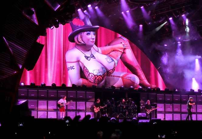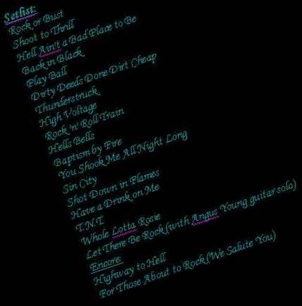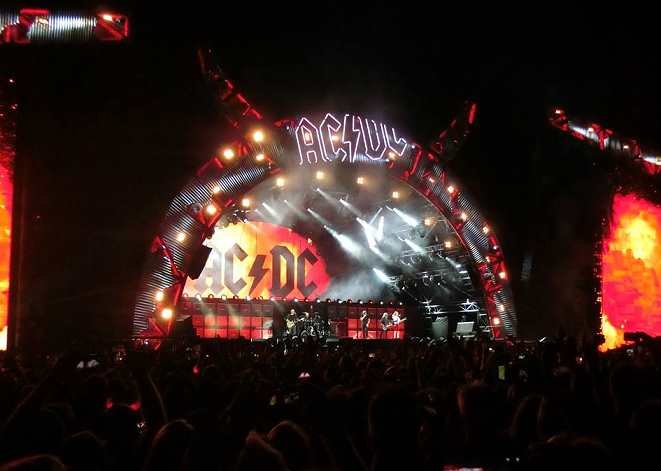 .....wie Angus langgezogenes Gitarrensolo, bei dem er begleitet von Konfettiregen auf einem Podest nach oben bewegt wurde. Auch das kannte man aus vergangenen Tourneen.