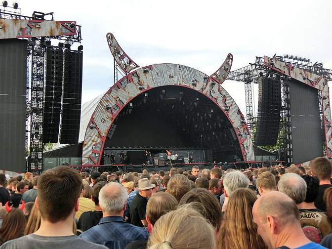 Ein AC/DC Konzert ist ja mittlerweile ein Happening der Art: „sehen und gesehen werden“. Man erinnert sich mit Grausen an die populistischen Auftritte diverser Promis und anderen Möchtegerns, die gerne mal den Rocker raushängen lassen, von AC/DC aber gerade mal „Highway To Hell“ oder „Hell’s Bells“ kennen, ansonsten aber lieber ZDF Fernsehgarten oder Carmen Nebel gucken. So war auch ein, nicht geringer Prozentanteil der Zuschauer reines Event-Publikum, das die Rocklegenden auf ihrer, evntuell letzten Tour eben einfach noch einmal sehen wollten. Vorbands und AC/DC sind ja so eine Sache für sich. King’s X konnten ein Lied davon singen, so war doch ihre Gastspielreise mit AC/DC in den 90ern ein Desaster, weil sie vom Publikum komplett ignoriert und ausgebuht wurden. Und auch 2015 passt die musikalische Ausrichtung der Vortänzer nicht wirklich. Pünktlich um 18 Uhr kam die erste „Vorband“ auf die Bühne: eine tätowierte Dame namens „DJ Kate Kaputto“, gesponsert vom Metal Hammer. Der Begriff „Vorband“ war da wirklich relativ. Alles was die Dame machte, war, ihren Mac anzustöppseln, ein paar bekannte Songs von Metallica und Alter Bridge etc. zu spielen und dabei rumzutanzen wie Pippi Langstrumpf auf Acid. Endpeinlich war das Ganze. Wenn das die Zukunft von Vorbands auf Rockkonzerten sein soll, dann mal Gute Nacht. DJ’s sehe ich persönlich nicht wirklich als Künstler an ehrlich gesagt, und so war der Auftritt der Dame unter aller Kanone und hatte wirklich keinerlei Resonanz beim Publikum und das zu Recht! Was die Gute nicht davon abhielt sich auf ihrer Facebookseite selber hochleben zu lassen. Auch die Wahl von „Vintage Trouble“ als Vorband war eher unglücklich. Die Soul-Rocktruppe war zwar musikalisch sehr gut aber passte eben NULL zu AC/DC. Am Anfang war das Publikum noch sehr verhalten, mit zunehmender Spieldauer kam jedoch annähernd etwas Stimmung auf, und die Truppe wurde nach gut 45 Minuten mit gutem Applaus von der Bühne verabschiedet. Wahrscheinlich würden diese Jungs in einem verschwitzen kleinen Club wesentlich besser wirken als vor 75.000 Leuten bei Tageslicht. http://www.vintagetrouble.com/ Nach weiteren endlosen 45 Minuten ging es dann endlich mit dem Hauptact los. Das sehr witzige Intro per Video ging nahtlos über in „Rock Or Bust“, dem Titelsong der aktuellen Scheibe. Der Sound war knackig und laut, lediglich Brian Johnson hätte man etwas lauter aussteuern können. |