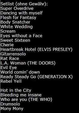 Falten aber ist fit wie ein Turnschuh. Die Vorgruppe The Damned war eher eine Bassdemonstration - jede Bassnote saß in der Magengrube. Das war für micht nicht so der Brüller. Für Punkfans war es aber sicher toll (Ich stehe aber nun mal nicht auf Punk). Billy und seine Band brannten danach ein echtes Feuerwerk ab. Sie spielten so ziemlich alle Hits, ein paar alte Generation X Songs sowie ein/zwei neue (??) Stücke (jedenfalls kannte ich die nicht).