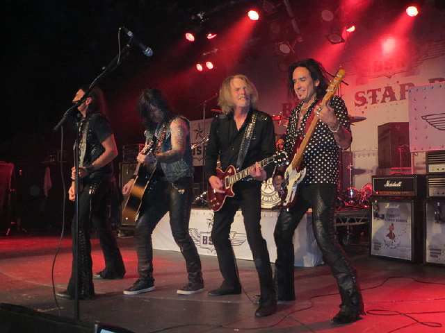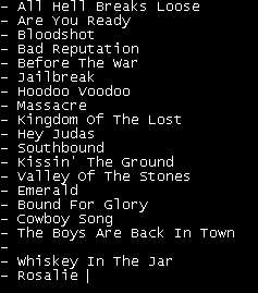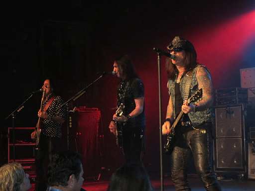 Das Konzert war ein echter Hammer ! Es war voller Power von der ersten bis zur letzten Minute mit astreinem Sound und einer tollen Performance.. Und der Sänger Ricky Warwick klang wie Phil Lynott und hat eine tolle Show abgeliefert Ich habe ihm nach der Show gesagt: Phil is still alive and kicking..seine Antwort..he was never dead,-)) Diese alten Herren haben wirklich eine tolle Performance hingelegt...das war Thin Lizzy pur, besser als in den vielen Jahren zuvor...diese Band harmoniert und rockt mit viel Energie !!! Es war ein echter Genuss für mich als Thin Lizzy Fan - Ein echtes Highlight !!! Sogar die Tiroler Szene-Animals Peter Laiminger und Kurt Oblin sind auch völlig ausgezuckt und einige andere Gäste auch! Auch unsere Freunde Bernie und Nobs waren hellauf begeistert, sowie Claudia und Gerald ebenso. Schade, dass nur so wenige Rockfans erschienen waren, von den Tiroler Musikern ganz zu schweigen ! Hauptsächlich sind sie immer jammern ,dass nichts los ist in Lande Tirol, um dann bei den wirklichen Highlights (noch dazu am Wochenende ) zu Hause auf der Couch zu hocken ,-((( Es gab leider zwei Vorbands , eine Lokalband aus Telfs namens Tollwuat und ein offizieller Opener aus Russland 'Red's Cool' ( schlecklich und grausam) so dass das Konzert der BRS erst um 22.45 h beginnen konnte. Dann jedoch gab es 90 Minuten Rock vom Feinsten,inkl. fast aller Songs der neuen CD und die Hits aus der Lizzy Ära ! Da blieben keine Wünsche offen. Und ein, für mich erfolgreicher Konzertabend ging viel zu schnell zu Ende. |