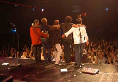 auf die Bühne für Gruppenfoto, Aftershow-Party – 17 Jahre