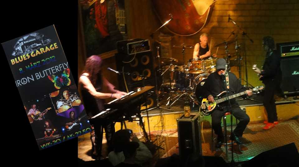 Am vergangenen Donnerstag machten Iron Butterfly in der Blues Garage Isernhagen bei Hannover Halt. Es wirkte jedoch auf mich wie ein unfreiwilliger Abschied. Anders kann ich mir nicht erklären dass diese Kultband vielleicht gerade mal 150 Nasen sehen und hören wollten. Das lag sicher nicht an einer allgemeinen Konzertmüdigkeit oder am Eintrittspreis von lächerlichen 20,- EURO. Denn das Gegenteil bewies zwei Tage später Richie Kotzen vor ausverkauftem Haus oder auch Melissa Etheridge im ausverkaufte Capitol am Tag vorher. Aber zurück zu Iron Butterfly (Quelle: Wikipedia.de): die "60s Psychedelic Rockband" wurde 1966 in San Diego gegründet. Es gab einige Umbesetzungen im Line Up sowie Auflösungen und Wiederbegründungen , zwei Bandmitglieder sind inzwischen verstorben. Heute besteht die Band aus Lee "Captain Beyond" Dorman (Bass und Gesang). Lee gründete nach der Auflösung von Iron Butterfly im Jahr 1971 die Band "Captain Beyond", daher der Spitzname), Martin Gerschwitz (Keyboard und Gesang), Charlie Marinkovich (Gitarre und Gesang) sowie Gründungsmitglied Ron Bushy (Schlagzeug). Die meisten antworten auf die Frage "Kennst Du Iron Butterfly?" pfeilschnell mit "In-A-Gadda-Da-Vida!!". Das ist jener Song vom gleichnamigen, 1968 erschienenem Album das der Band sehr viel Ruhm und damit Geld bescherte. Ganz witzig ist die Anekdote, die sich über die Enstehung dieses Titels seitdem rankt (Quelle: Wikipedia.de) : Schlagzeuger Ron Bushy hatte bei den Aufnahmen einen Kopfhörer auf und fragte Doug Ingles (Gründungsmitglied, damals Keyboard und Gesang) nach dem Titel des nächsten Songs. Dieser antwortete mit " In The Garden Of Eden" - Ron verstand unter seinen Kopfhörern jedoch "In-A-Gadda-Da-Vida" - und kritzelte den Titel sogleich artig unter die Noten. Andere sprechen auch von Drogen während der Aufnahmen ... wie auch immer: der Titel wurde nicht nur wegen seiner Länge sondern auch wegen des enthaltenen Schlagzeugsolos zum Geniestreich. Diesen konnte die Band allerdings nie wiederholen. Auch das sehr bekannte "Butterfly Bleu" konnte nicht an diesen Erfolg anknüpfen.