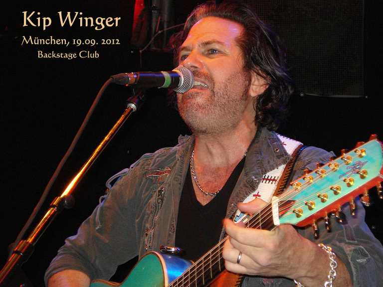 ...... und wurde vom Puplikum enthusiastisch begrüßt. Befürchtungen, dass der Funke mit der fehlenden Band im Rücken nicht auf das Puplikum überspringen würde, wurden gleich zunichte gemacht. Kip ist ein hervorragender Gitarrist und lockte aus seiner 12saitigen Acoustikgitarre jede Menge druckvolle Akkorde hervor! Im Progamm von Kip befanden sich natürlich sämtliche Hits von Winger wie “Can´t Get Enough”, “17”, “Heading for A Heartbreak” oder auch die Gänsehaut- Ballade “Miles Away”, für die sich Kip kurzerhand Unterstützung aus dem Puplikum holt.