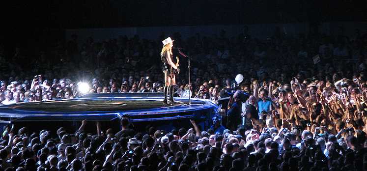 Visitor Review 1 Die Show war ein Alptraum, es ging erst um kurz vor halb 10 los, die Leute haben schon zu buhen angefangen. Die Hälfte der Songs kannte ich gar nicht, die waren wohl vom neuen Album. Sie hat eine einzige Ballade gesungen, ansonsten waren ALLE Songs mit dem absolut gleichen (nervigen) Techno-Beat unterlegt. Sie ist oft mit einer Gitarre rumgehüpft, auf der sie anscheinend nicht mal einen Akkord spielen konnte, und auch ansonsten sah man nur Rumgehüpfe, Tänzer, und Tralala haben vom eigentlich Mittelpunkt abgelenkt. Und ehrlich gesagt habe ich da auch schon weitaus besseres gesehen. Pink z.B. ist da um Lichtjahre besser. Stimme hat die Gute offensichtlich überhaupt keine, die Hälfte schien ohnehin vom Band zu kommen, aber einige Parts müssen live gewesen sein, denn so falsch kann man auf Band gar nicht aufnehmen ;-) Gegen Madonna sind Britney Spears und Christina Aguilera wahre Goldkehlchen, und auch deren Shows waren, verglichen mit dem hier, weitaus besser. Traurig aber wahr. Den meisten Leuten scheint's trotzdem gefallen zu haben. Es waren übrigens viele Schwule und Lesben da und auch viele aufgetackelte Ladies mit Klunkern ;-) Es sah dann sogar noch relativ voll aus, zumindest wirkte der visuelle Aspekt ok bei Beginn des Spektakels. The show was a nightmare.Starting off at 9.30 p.m. people had already started whistling and shouting because of the delay. Half of the songs I didn't even know to be honest. They were probably from the new album. Madonna only sang one ballad, apart from that all other tracks were framed with a sick techno beat. She jumped around often with guitar round her neck. But apparently she didn't even play one cord. All this jumping, the dancers and other fuzz drove away from the actual focus. To be honest, I've seen so many other better shows. Pink for instance - there are lightyears inbetween her show and this one here. Madonna's voice sounded rather weak, when she did some live singing inbetween. the rest seemed to have been playback anyway. However - even Britney Spears and Christina Aquilera have are nitingales compared to her. Sad but true. - Anyway, most people seemed to have luv'ed it. There were many homosexual people in the audiance and these overdressed ladies. At least,despite the poor ticket sales, the place seemed rather full and well visited, which for her, is probably the most important thing. . |