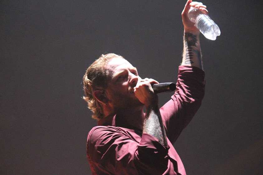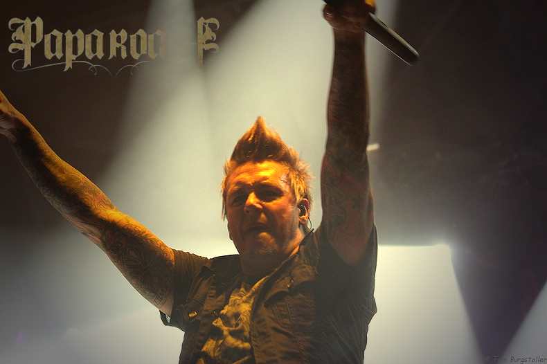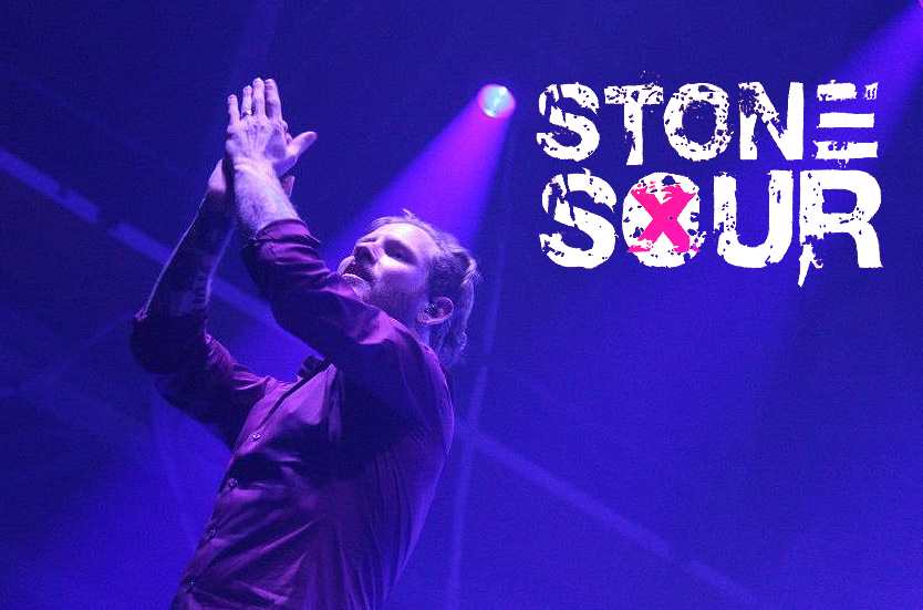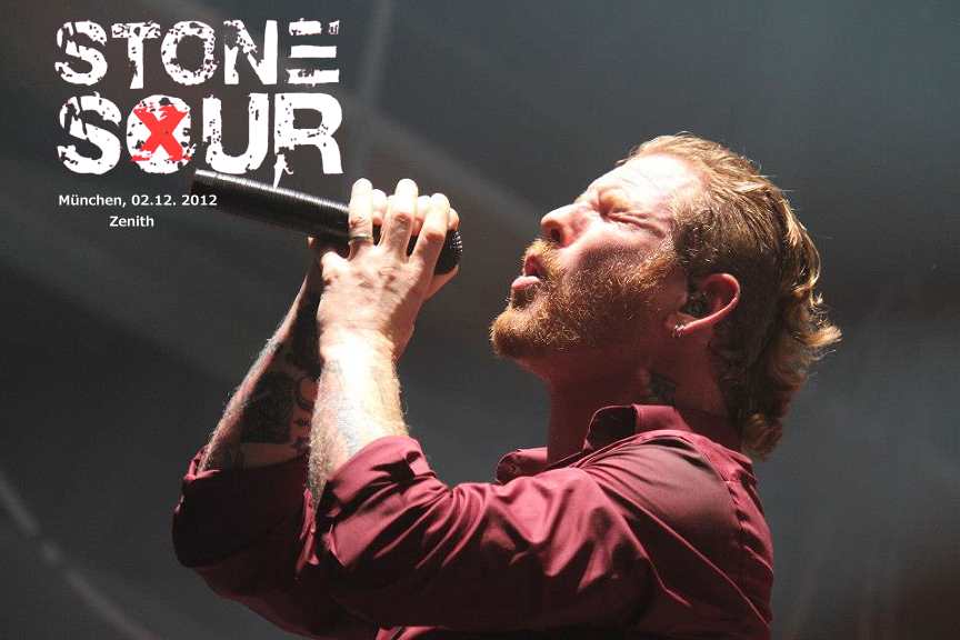 Nun zu Stone Sour: Freudige Erwartung machte sich bei den ersten Tönen breit und das Warten auf die Band, während schon die ersten Textzeilen des Openers (vom Band?) liefen und die Frage: Wie schaute Corey im Moment gerade aus? Hatte er kurzgeschoren, blonde Locken oder war er etwa gefärbt? Gar nichts von allem: wie ich später beim Durschauen der Fotos feststellte, denn Corey trug „Irokese“. Immer wieder fasziniert von der Vielfältigkeit seiner Stimme war ich auch von seiner Bühnenpräsenz und vor allem auch von seiner Selbstironie beeindruckt. Nach den ersten 3 Songs konnte ich mich nun voll auf das Konzert konzentrieren und der Sound war zwar besser als bei den Vorgängern , aber egal wo man sich in der Halle befand, er blieb weiterhin verbesserungswürdig. Corey war definitiv die polarisierende Person der Band während der Rest eher Statisten waren, die jederzeit ausgetauscht werden konnten und es würde nicht mal auffallen. Was die Leistung der Jungs keinen falls schmälern sollte, aber Corey war, ist und bleibt die „Band“. Ich persönlich war froh, dass auf der Setlist einiges an alten Songs zu finden war. Zwischendurch gab es ein, durch die ruhigeren Lieder bedingtes, kleines Stimmungstief, das durch die darauffolgenden Songs dann wieder gesteigert werden konnte.