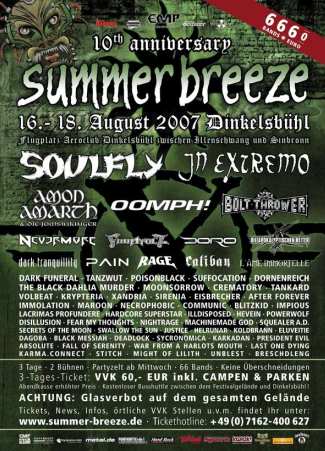 stilistisch deutlich besser. „Elfen-Metal“ gab es mit AFTER FOREVER, KRYPTERIA, SIRENIA und XANDRIA am Summer Breeze reichlich. Im Grunde waren auch alle vier Bands wirklich gut aber kein Vergleich zu Szenegrößen wie Nightwish oder Within Temptation, die mir persönlich lieber gewesen wären.