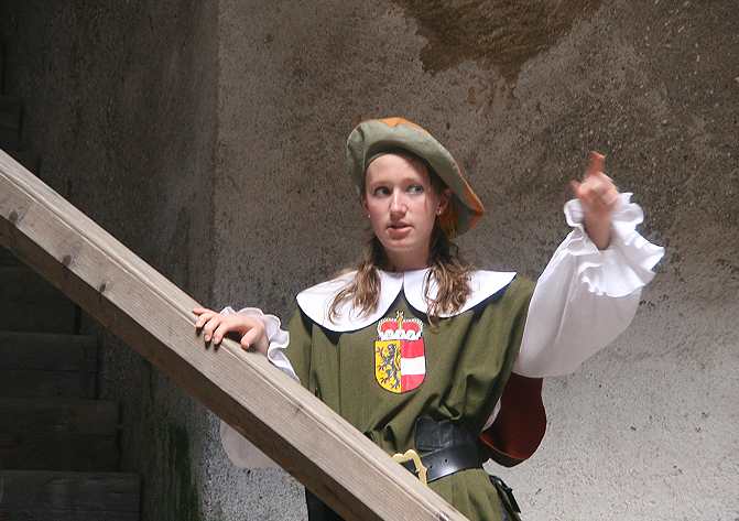 Josef Steinwender, Bauer vom Peyrlgut in Lasaberg im Lungau, konnte gut reden und sein Talent wurde von Anton Buecher, seit 1753 Pfarrer von Tamsweg, erkannt. Dieser betraute ihn mit der Aufgabe, in seinem Haus Christenlehren für die Nachbarschaft abzuhalten. Durch das Studium der Heiligen Schrift und dem Christenlehrbüchl, also den kleinen Katechismus des Peter Canisius, ein Lutherianer, erkannte er gleiche Inhalte. Bald wurden seine Bibelinterpretationen zu Treffpunkten von Bauern und Knechten. Er gab sich nach ersten Verhören dann selbst als Lutherianer aus. Schließlich wurde er 1760 bei einem Geheimtreffen verraten und zu tagelangen Verhören aufs Schloss Moosham gebracht. Anschließend ist er als Gefangener auf die Burg Hohenwerfen gekommen. Um sich vor den laufenden Verhören und Bekehrungsversuchen zu schützen, stellte er sich stumm. Er verweigerte jeden Kontakt mit der Außenwelt, sogar seine eigene Familie (er hatte 4 Kinder) wollte er nicht mehr sehen. So ist er nach seiner Freilassung nach 22 Jahren Gefangenschaft auf eigenen Wunsch auf der Burg Hohenwerfen geblieben und machte sich bis zu seinem Tode am 5. Oktober 1782 sogar selber als Gefangenenwärter nützlich. Insgesamt war er über 24 Jahre auf Hohenwerfen. Josef Steinwender, a farmer from Payrlgut in lasaber at the Lungau county, was an excellent talker. He was discoveres by Anton Buecher, who was a priest of Tamsweg in 1753. He gave him the duty to hold christian speaks for the neighbourhood. Steinwender soon became very popular and named himself a Lutheran. In 1760 he was betrayed by other farmers and taken to castle Moosham. Afterwards he was taken as a prisoner to the castle Hohenwerfen. To save himself from awful hearings, he pretended to be speechless. He denied every contact with the outside world, even with his own family (he had 4 children) he never wanted to see them again. After 22 years of prison, when he was finally released, he deceided to stay at the castle and worked as a prison warden until he died in october 1782. Josef Steinwender spent 24 years on the castle and had never left it once. |