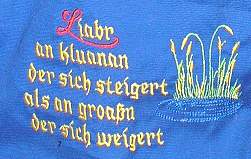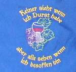 in english: nobody sees when I'm thirsty, but everone sees, when I'm drunk (Meggy's Schurz)