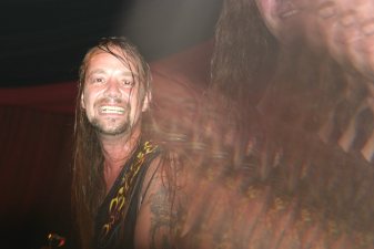 Wer aber glaubt, dass es keine Steigerung gibt beim Geräuschpegel-Massaker, -(..was bitte nichts mit der Qualtität der Musik selbst zu tun hat, wohlgemerkt!) – der wird spätestens bei den ersten drei Tönen von UDO eines besseren belehrt. Hoch lebe das Klopapier der örtlichen Toilette, das zweckentfremdet meine Lauscher vor einem Trommelfellinfarkt schützt. Man muss sich nur zu helfen wissen. UDO selbst, - nun, no Change seit ich weiß nicht wann. Nach wie vor die schlanke Silhouette äußerst vorteilhaft im üblichen Haute Couture’- Camouflage-Look verhüllt, präsentiert sich unser kleiner Dauerbrenner im äußerst effektvollen Sonnenschein des Metall-Olymps als absolutes Non plus Ultra der deutschen Heavy-Philosophie. Die Motorik etwas gesetzter und der Tenor einen dreiviertel Ton tiefer, - aber wir werden schließlich alle nicht jünger. Stoisch seinem Stil treu bleibend presst UDO mit tierischem Ernst die headbangenden Arien aus seiner goldenen Kehle und bemüht sich aufrichtig dem individuellen Image gerecht zu bleiben. Tut er, denn auch unser Kleiner hält sich an den Grundsatz, - Schuster bleib bei deinem Leisten, aber das 100%ig perfekt. Die gekonnt eingesetzten Light-Special-Effects unterstreichen das Ambiente hervorragend ohne vom eigentlichen Geschehen abzulenken. Die Palette der Setlist liegt natürlich auf dem Schwerpunkt – neues Album, das mit allem Nachdruck betont wird. Aber auch ältere Tracks wie „Man & Machine“ verfehlen keineswegs ihre Wirkung. – Accept... – klar muss sein. Das erwarten die Fans schließlich und sei es lediglich aus Nostalgiegründen. Und ohne ein „Balls To The Walls“ wäre ein U.D.O. Gig kein U.D.O. Gig. Und damit basta. “I’m A Rebell“ schließt die Metalmania ab, die, so muss ich gestehen, alles in allem ein solides, bodenständig- hart rockendes Intermezzo war. – Eben so, wie’s schon vor 10, - 15, - und 20 Jahren war... Nichts wirklich Neues, aber immer noch gut. Deshalb... „Fast as A Shark“ – Rock’n’Roll is timeless und wir sind immer noch jung. Good Night. |