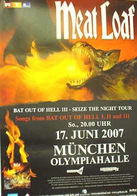 ganzen Gewühl von Roadies die zum Abbau zur Bühne gingen kam dann nach gut 6-7 Minuten nach Konzertende plötzlich Meat Loaf eskortiert von 2 Johanniter Sanitätern und seiner persönlichen Assistentin sowie einem herbei eilenden Toursecurity. Er ging sozusagen durchs Arbeitergewühl zur Garderobe. Er lief direkt 1 m an mir vorbei und schnaufte wie ein "Walroß" und war sichtlich fertig! Ich hab dann später einen der Sanitäter gefragt und der sagte mir, dass man Ihn sofort, als er von der Bühne runterkam, in der Umkleidekabine (der Sängerinnen) über 5 Minuten beatmen musste, damit er überhaupt wieder stehen konnte, so fertig muss er gewesen sein. Einerseits verwunderlich, dass er sich so eine Tortur antut, und andererseits Respekt, dass er trotzdem ein Konzert mit 3 Stunden spielt, wenn er danach so fertig ist. Allerdings spielt er wie auch Ozzy nur alle 2 Tage ein Konzert, hat also immer einen Tag Pause dazwischen. Kein anderer Musiker schafft es so wie Meat Loaf mit viel Blabla in 3 Stunden 18 Songs inkl. Zugabe zu spielen. Soweit diese kleinen Backstage Anmerkungen zum "Fleischpflanzerl". Ich weiss nicht, inwieweit man sowas auf die Homepage setzen kann ohne die Intimsphäre von Meatloaf zu verletzen? Upsss, das hamma überhört..... |