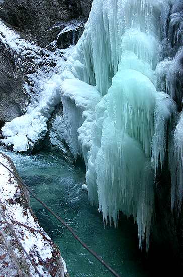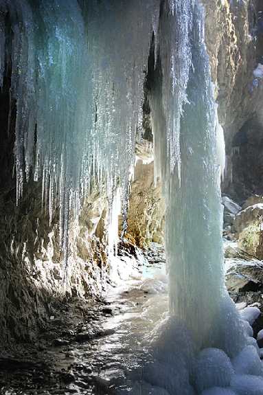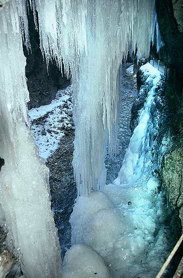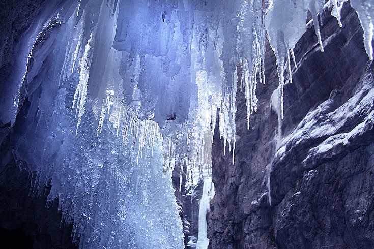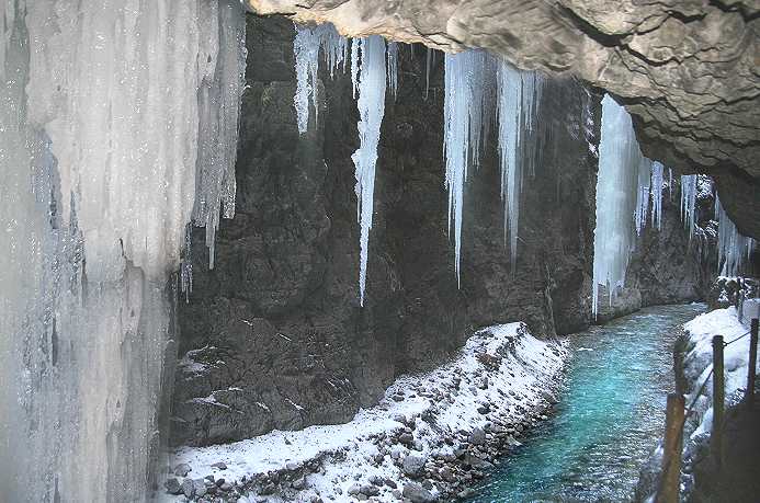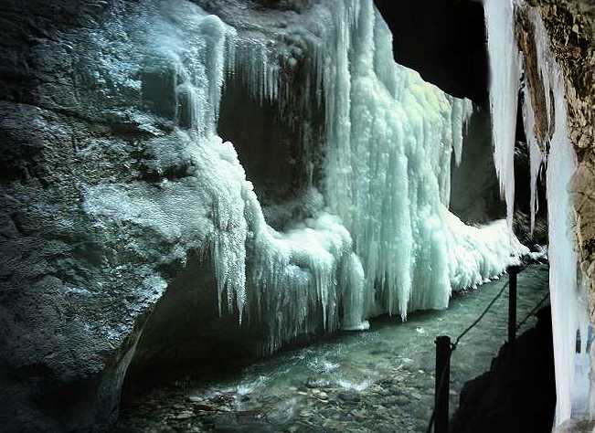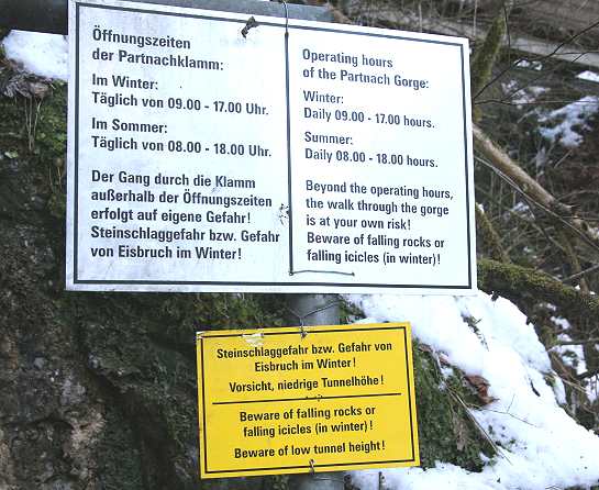 Achtung: warm anziehen. Die Temperatur beträgt in der Klamm