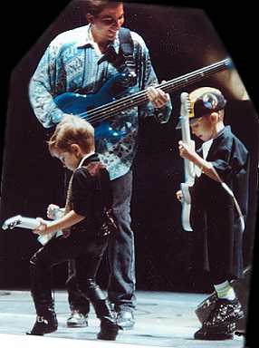Jungs auf die Bühne und spielten auf Plastikgitarren mit. Es waren Jeffs