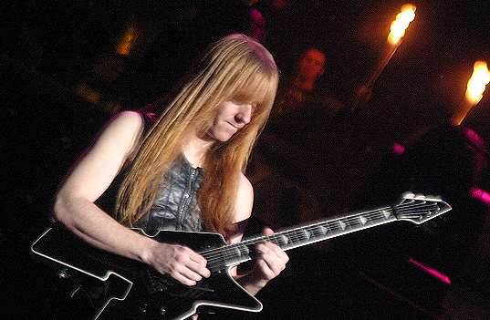yep, die Rechnung ist aufgegangen und zwar doppelt unterstrichen, multipliziert und üben den Daumen gepeilt. Damit ist die manowarische Absage-Strategie gemeint, die zwei Mal für Verdruss bei all den treuen Aposteln gesorgt, aber im Endeffekt genau ins Schwarze getroffen hat, nämlich dass die Bude rammelvoll ist. Zwar heißt die Devise noch nicht ausverkauft, aber die Olympiahalle beim dritten und gelungenen Anlauf nunmehr so gut wie voll zu kriegen, und das auch noch für eine Heavy Metal Band dieser Gangart, das ist schon beachtlich. Das muss sogar ich zugeben, die mit dieser Band schon immer so ihre kleineren Probleme hatte nicht zuletzt wegen ihrer Klischee Ausschlachtung. Okay, jetzt hamma sie endlich da, die selbsternannten Odin Sprösslinge, und wir harren in Ehrfurcht der Dinge, die da mit viel Schall und Rauch heran donnern würden. Die Erwartungen sind dementsprechend astronomisch hoch gesteckt. Und wehe dem Anspruch wird nicht Genüge getan. Dann gibt’s hier germanisches Hackfleisch. Ach ja, auf die etwaige Lautstärke wird hingewiesen, und es wird keine Verantwortung übernommen. Aber eine Durchsage offeriert die Chance, bei Unverträglichkeit des Dezibel .Gewitters, innerhalb von 15 Minuten eine Retournierung des Eintrittspreises an den Kassen. Fair enough würde ich sagen. Und kein Risiko für den Veranstalter. Denn, diejenigen die hier sind, wollen Manowar auf Gedeih und Verderb sehen, auch auf die Gefahr hin, dass Ertaubung droht. Die Walhalla öffnet sich erstmalig um 19 Uhr, und Merlins Magie zaubert eine Partie an den Tag, die sich, dem Image entsprechend, ‚Holy Hell’ nennt. Mit dem Fokus auf die Front-Teufelin, die schon fast fatal Ähnlichkeit mit Alana Myles besitzt, versucht dieser Höllenexport die Aufmerksamkeit der ausschließlichen Manowar Fans zu gewinnen. Und das gelingt ihnen spätestens, als mitten im Set eine vertraute Stimme aus dem Nirgendwo erklingt und zum Duett mit der hübschen Teufelin anstimmt, um alsbald in der Gestalt von Papagallo Eric Adams aufzutauchen.