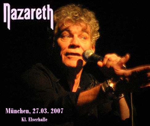 McCaffertys Optik betrifft. Hast mi, - wie der Bayer zu pflegen sagt?! Na ja, die schottische Dreifaltigkeit namens Nazareth ist zumindest das, was man allgemein unter Institution versteht, dank 40-jähriger Präsenz am Rock’n’Roll Himmel. Alle Jubeljahre wieder finden sich die Highlander unter anderem auch hier in unserer bayrischen Landeshauptstadt zum Kaffeekränzchen ein. Und dass sie noch nicht vermod.... sorry, in Vergessenheit geraten sind, das beweist die, immerhin stattliche Zuschauerzahl von ca. 500 Liebhabern klassischer 70er Jahre Rockmusik. Das Durchschnittsalter liegt bei ungefähr 40 plus, wobei man anmerken muss, dass sogar zwischendrin die eine oder andere verlorene Seele im jugendlichen 20er Elan den Weg hier her gefunden hat. Höchstwahrscheinlich inspiriert durch ihre Erzeuger, lauschen die wenigen Jungspunde genauso ehrfürchtig zu den Klängen von Nazareths ehemaligen Hits wie die Alten, bei denen jene allemal nostalgische Gefühle hervor rufen. - Den Startschuss geben vorher aber noch die Münchner Lokalmatadore „Xing“ (sprich Crossing) die sich freuen, hiermit wieder einmal die Gelegenheit zu erhalten, sich einem etwas breiterem Publikum zu präsentieren. ![]() Großteils eine Generation jünger als die Stars des Abends, dynamisch und mit viel Eifer bei der Sache, versuchen sie den anwesenden Nazareth-Fans ihre Musik näher zu bringen. Das Engagement ist riesig und die Motivation sich von seiner besten Seite zu zeigen, überträgt sich unwillkürlich aufs Publikum, die dies wiederum mit vermehrter Aufmerksamkeit belohnen. Allerdings auch mit etwas Skepsis, denn Xings Musik ist, wie soll man es bezeichnen.... ?... sagen mir mal so – etwas gewöhnungsbedürftig. Und man merkt, dass die Praxis fehlt, was wiederum eine leichte Unsicherheit spüren lässt. Aber was nicht ist, kann ja noch werden. Der Tipp wäre deshalb, live spielen was die Klampfe aushält, dann wird das, vorhin erwähnte Engagement auch wirklich belohnt. Immerhin, der Anfang ist gemacht.- ![]() Nazareth selbst gehen wie immer gelassen an die Sache heran. Das Gespenst von Canterville gibt seinen Segen und der Dunstkreis schließt sich einmal mehr mit all den alten Gassenhauern, wie Razamanaz, This Flight Tonight oder Love Hurts, den größten Klassikern der Band. Wobei ich gleich wieder zur Allgemeinbildung mit beitragen will, indem ich immer wieder betone, dass ‚Love Hurts’ zwar ein Riesenhit für die Band war, aber mitnichten von jenen im Original stammt. Und ich gehe jede Wette ein, dass keine zwei Fans hier in der Halle wissen, wem Nazareth dieses gute Stück zu verdanken haben. Komponiert wurde das Lied von einem gewissen Boudleaux und Felice Bryant, einem amerikanischen Ehepaar, das gemeinsam als Songwriter vor allem Country- und Rock’n’Roll Musik Ende der 50er und Anfang der 60er bekannt wurden. Den Song schrieben sie für die Everly Brothers, die diesen 1960 erstmalig aufnahmen. Später, ebenfalls in den 60ern, gabs eine Version von Roy Orbison, aber erst Jim Capaldi, den wir älteren Semester von der legendären Band Traffic her kennen, hat die Nummer zum Hit gemacht . Das Ganze ist auf Capaldis Soloalbum „Short Cut Draw Blood“ von 1975 zu finden. Es ging in die englischen Charts auf Platz 4. Die Adoption von Nazareth war dann die allerletzte. Das wieder mal zur allgemeinen Weiterbildung Eures Musikwissens.