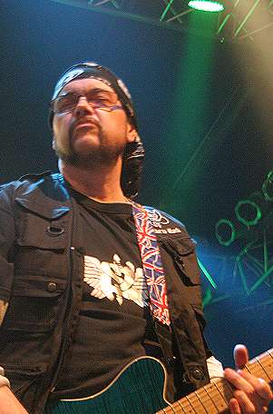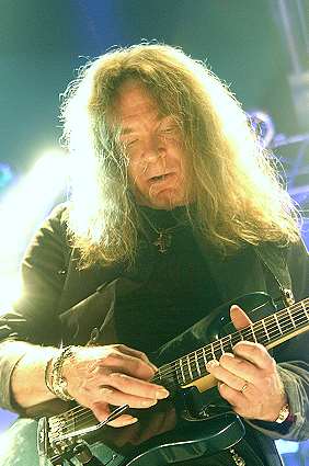 Allzeit Gitarrist Paul Quinn, wieder mit schickem Piratenkopftuch bestückt,