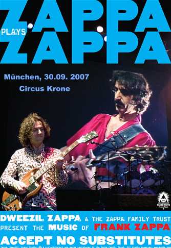 Der Zappa Family Trust ist ein riesiges Firmenimperium, welches sämtliche Nachlässe des 1993 verstorbenen Frank Zappa verwaltet. – Und weil die eigene Karriere nicht so richtig funken wollte, beschloss Sohnemann wohl, Franks Spirit und Musik wieder aufleben zu lassen. Kein einfaches Unterfangen, denn Zappas Musik ist in etwa so schwierig wie eine chinesische Rechenformel. Und nur jemand der selbst ein Ausnahmemusiker ist, kann jene tatsächlich umsetzen. Ian Donald Calvin Euclid Zappa, bzw. Dweezil hat jenes Talent von seinem Vater geerbt. Das steht fest. Der 38jährige tourt seit ca. einem Jahr unter dem Pseudonym Zappa Plays Zappa durch die Lande. Und jawohl, das Konzept ist aufgegangen. Die Musik vom Vater lebt mehr denn je, und dank der gravierenden äußerlichen Ähnlichkeit von Vater und Sohn, erlebt man bei diesem Konzert wahrhaftig fast so was wie einen Zeitsprung. Interessant ist auch, dass bei dieser Zappa Plays Zappa Tour immer wieder geniale Gastmusiker mit an Bord springen. So war u.a. schon Steve Vai und der ehemalige Zappa Drummer Terry Bozzio mit von der Partie. – Leider nicht so hier auf dem Deutschland Abschnitt der Tour. Aber dafür ist Ray White dabei, ebenfalls ein ehemaliger Mitstreiter von Frank der auch auf den Alben "Tinsel Town Rebellion" und "Zappa in New York" mitgewirkt hat. Er übernimmt übrigens fast alle Gesangsparts im Programm. Weiters spielen noch: Joe Travers (Drums), Billy Hulting (Percussion), Scheila Gonzalez (Keyboards, Saxophone, Voc.), Aaron Arntz (Keyboards, Trumpet), Peter Griffin (Bass), Jaime Kime (Rhythm Git), alles erstklassige Instrumentalisten, die zusammen mit Dweezil dieses Konzept aufgehen lassen.