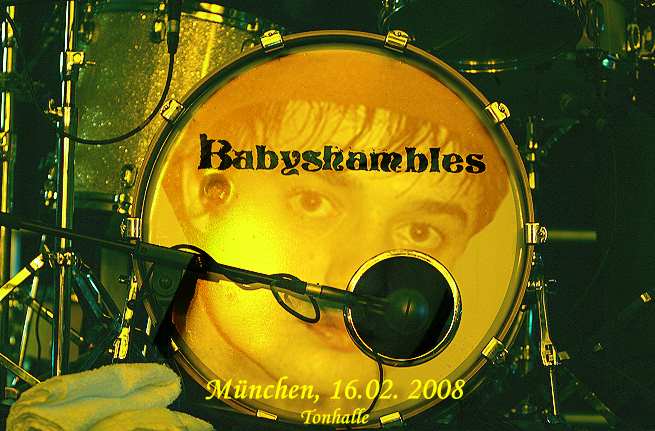 Man nehme einen 1.90 m Kerl, figürlich frisch aus der Sahelzone importiert, mit dem Gesicht eines 16jährigen, lasse ihn eine Affäre mit einem Topmodel und nebenbei noch einige Drogenexzesse durchleben, inklusive etlicher Verurteilungen und anschließendem Rehabilitationsprogramm.Eine Band hat er auch noch, die bis vor ca. einem Jahr noch ein ziemliches No Name Produkt war, und schwups haben wir den neuen Superstar am Rock’n’Roll Himmel. Klingt jetzt einfach, ist es aber beileibe nicht. Denn so eine Reputation, wie sie unsere englische Skandalnudel inzwischen inne hat, muss erst mal hart erarbeitet werden. Ein Dank gilt dabei auch der Regenbogenpresse, die in seiner Hinsicht aber auch rein gar nichts anbrennen lässt- Fakt ist, Pete Doherty ist für alles zu haben, nur nicht für einen soliden Lebenswandel. Die Babyshambles glänzten in den vergangenen Jahren mehr durch Absagen als durch Auftritte. Und falls so ein Intermezzo dann überraschenderweise doch mal stattfand, musste man damit rechnen, dass der Zauber manchmal nach nur 30 Minuten vorbei war. Was könnte passender auf Doherty zutreffen als Genie und Wahnsinn. Denn dass er ein sauguter Musiker ist, das hatte er bereits bei seiner früheren Band The Libertines bewiesen. Allerdings wurde er aus seinem eigenen Nest gefeuert wegen der anhaltenden Drogenprobleme. Den Namen durfte er aus rechtlicher Sicht nicht weiter verwenden. Also stampfte er ein neues Produkt aus dem Boden und nannte es Babyshambles, was so viel wie Baby Chaos bedeutet. Die Bilanz der Band bisher: das Debutalbum ‚Down In Albion’ 2005 und ‚Shotter’s Nation’ vom vergangenen Jahr. Und jetzt simma hier und heute in der ausvekauften Münchner Tonhalle im Februar 2008, und glauben erst, dass dieser Auftritt stattfindet, wenn der Spargeltarzan tatsächlich da oben in Erscheinung tritt. Vorher gibt’s noch einen Einstand von den, nach einer Figur aus Carl Zuckmayers Stück "Der Hauptmann von Köpenick", benannten, deutschen Jungband „Kilians“.