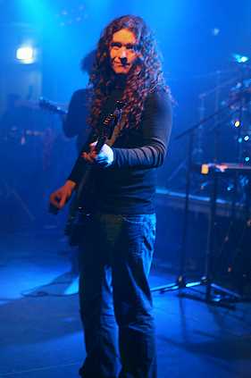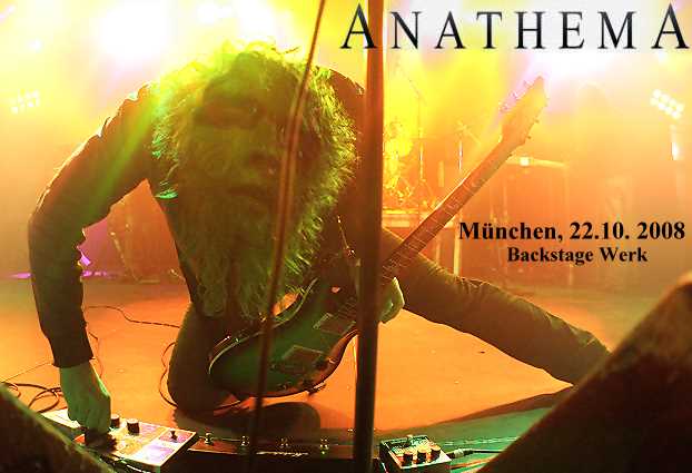 Hinzufügen muss ich noch, dass ich Anathema bereits einmal live gesehen habe, wenn man’s genau nimmt. Und zwar waren sie selbst Support von Porcupine Tree. Aber ich hab’ damals grad nur noch die Schlussminuten mitbekommen, weil ich wieder, wie so oft relativ spät dran war. Deshalb ist die Erinnerung an jene nur noch wage. – Das einzige was ich allerdings sofort feststelle: - die Haare sind ab, zumindest bei Vincent und Jamie Cavanagh, die früher mit ihren hüftlangen, schwarzen Wallelocken zusätzlich beeindruckten. Aber gut, wir werden alle älter, bequemer und praktischer, und heutzutage muss man auch keine sogenannte Matte mehr besitzen, um Rockmusik zu machen. Ich finde es cool von den Briten, dass sie sich unbeirrbar, zu diesem Schritt entschlossen haben. Denn es beweist, dass die Band ihre Imagepflege einzig und allein in der Musik sucht und nicht in nebensächlichen Äußerlichkeiten. Die Beleuchtung on Stage, auf die wir Fotografen immer so unendlich achten, ist so gut wie gar nicht vorhanden, und sie besteht allerhöchsten aus einigen dunkelroten bis tiefblauen Schattierungen, die die Musiker als gerade mal wahrnehmbare Silhouetten vom Hintergrund abzeichnen. Ja, eventuell könnte man diesen Umstand noch auf die Imagepflege zusätzlich münzen. Nicht so gut für uns Knipser, die heute zum Großteil aus holder Weiblichkeit besteht, die aufgestylt, mitsamt ihren Geräten nur allzu offensichtlich versuchen, die Stars on Stage zu bezirzen. Ein Grund, warum ich mich schon bald wieder aus diesem Bereich verkrümle und meine restlichen Bilder lieber von außerhalb und einiger Distanz schieße.