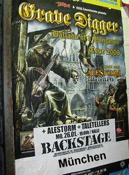 Unsere schottischen Freibeuter von Alestorm hier haben ihm jedenfalls ihr Erstlingswerk gewidmet. Und die folkloristischen Einflüsse (Highlander Art) lassen sich keinesfalls überhören. Mit viel Säbelgerassel wird die Front in der Backstage Halle geentert und, was soll ich sagen? – auch umgehend erobert. Eine musikalische Kanonenkugel schießt die nächste ab, ohne dabei an Speed zu verlieren, und sämtliche Matrosen und Smutjes im Münchner Heavy Metal Publikum schälen sich aus ihrer Kutten-Kartoffelhaut und frittieren sich gegenseitig zu Erdäpfelpüree. Sehr schön, so soll’s sein. Und was besseres als so eine Kaperung der Backstage Frigatte, wie grade eben, kann sich Captain Blei und seine Bounty- Alestorm Crew gar nimmer wünschen. Respekt, die Schlacht ist in 45 Minuten durchaus gewonnen, und Jolly Roger hisst wieder die Segel zur Weiterfahrt. Ich für meinen Teil, könnte mir gut vorstellen, dass wir in absehbarer Zeit noch mehr von unseren schottischen Metal Freibeutern zu hören bekommen. Ahoi und wohl bekomm’s.....