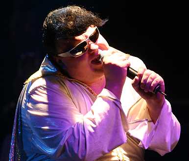Pampas-gewickelt beim Anblick der verkappten Elvis Imitatoren. Wobei der
