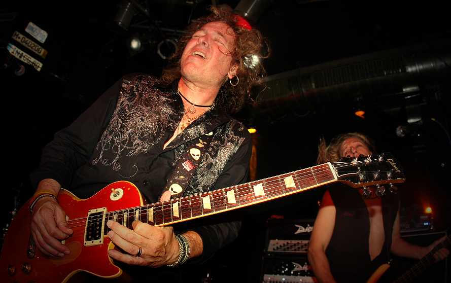 Aber im Grunde genommen steht und fällt der Laden mit erstgenanntem Kopf der Band, der mit seinen, inzwischen 57 Jahren deutlich und klar beweist, dass man auch in diesem Alter noch die Welt, bzw. Bühne aus den Angeln heben kann. Und das tut er auch heute wieder, hier in der Garage in München. Y&T legen um 20.30 Uhr los, als ob es kein Morgen mehr gibt und das mit dem passenden Titel ‚On With The Show’, der vom letzten Longplayer stammt. Insgesamt weist die Setliste übrigens sechs Knaller von Facemelter auf. Die anderen 16 Diamanten heißen ‚Midnight in Tokyo’, ‚Mean Streak’, Summertime Girls, um nur einige zu nennen, dann das phänomenal gute ‚Rescue Me’, oder auch ‚Squeeze’ das als einziges Stück nicht von Dave Meniketti gesungen wird, sondern von John Nymnan, der hierbei heftiger explodiert als der Ätna bei seinem momentanen Vulkanausbruch.