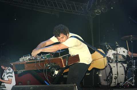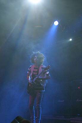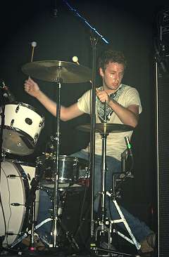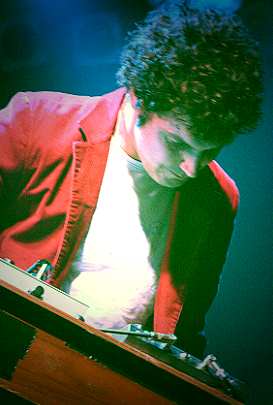 Hendrix look-a-like with his hairstyle. On bass and keyboard