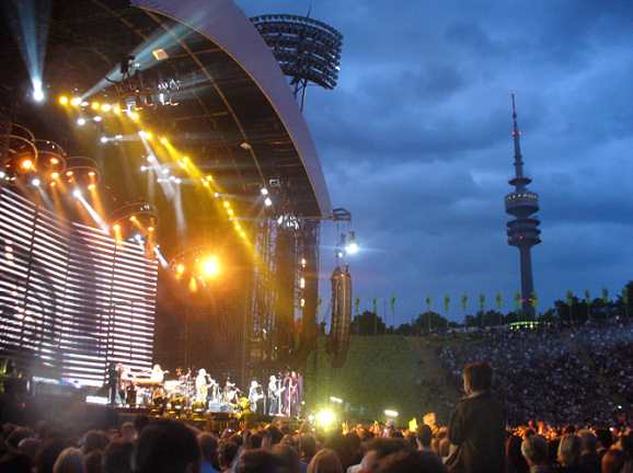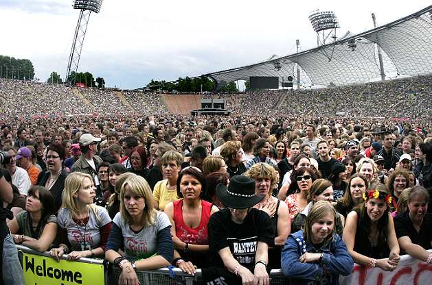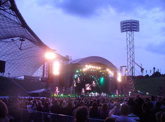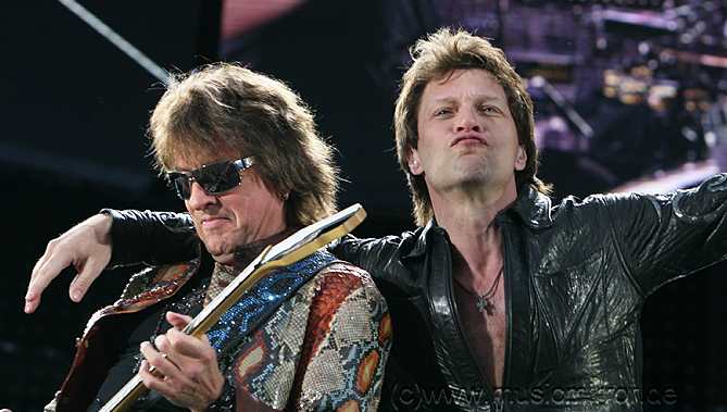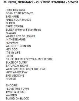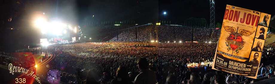 Okay, first of all I wanna say a few things before I start this review. For once it's the fact, that the current album 'Lost Highway' has flopped over here in Germany, probably most of all, because we Europeans seem to have a slight problem with the Country genre. But it's also a fact, that this album is the most successful one in Bon Jovi's carriere, if you count the Billboard positions together. And now I ask you out there, what is more important? A small market in Europe, or the allmighty US-Billboard Charts? So please do me the favour, and stop mourning about a product, which pushed Bon Jovi up to a stage, where they have never been before. Apart from that, there is the next question - which artist nowadays can fill our Olympicstadion almost completely. Yeah well, it's not quite sold out, but 68.000 fans speak for themselves, that this group is still on the very top. No matter, whether they'd do pop, or rock or country music. Jesus wept.... is it so hard to understand?! I myself can remember very well back in the past in 1984 when Bon Jovi played Munich in the Alabamahalle in front of only 300 kids. It was their very first solo tour throughout Europe. And it was wonderful. From that point the success increased constantly and well deserved. The receipie lies probably between wild rocker and commercial Pop-Rock for everybody. And it tastes excellent. Because even after more than 25 years, Mr. Jon BonGiovi has reached a goal, where other artists are not even dreaming off. So stop arguing about any Lost Highway criteria, commercial rubbish or scandals - whatsoever. It's a fact, that Bon Jovi are more on the top than ever, without doubt. Everything else is an individual matter of taste... And the best prove is the current tour....