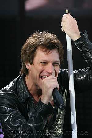 Jon Bon Giovi is a very punctial person. And after he and the band cheered themselves up to rhythm of AC/DC and drummer Tico made a short visit to the V.I.P. lounge, they put their buts up to the stage at 8.30 p.m., and the stadium starts immidiately going wild.