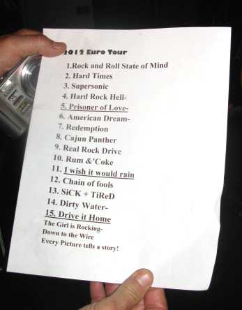 Little Caesar are: Ron Young: (Voc), Loren Mulinare (Git), Joey Brasler (Git), Fidel Paniagua (Bass) Tom Morris (Drums) whereby only guitarist Brasler is a newbe.The rest comes from the glory early ninties era, when the hair was still long and the tattoos were there to show off. Well the wild times are definately over, as Ron Young says up there tonight, but this is more considering the life style, the look and the general attitude. The music and the spirit is still the same than back then. And so it doesn't matter, when we all look like behaved midldeaged cuddly teddybears. We all don't get any younger. And what the Rolling Stones can do with almost seventy, everybody else can do, when you just got the right attitude. The drive on stage is still the same, and the temperature in here has screwed up to above the sunshine.