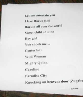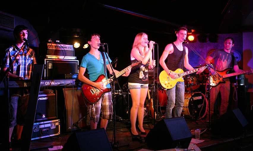 And I do pull my hat in front of these kids, who's idols seem to be most of all bands such as Guns'n'Roses, who's big hits were written, when they weren't even born. And so I will not criticise them too hard. I mean, how should they possbilly got any experience or a hell of a practice yet. But the fact, that these six kids are stepping up there on stage, trying to perform those songs of their idols - and they are not that bad, believe me. - is simply great. Sbeks, that's what they are named, are: Martin, Verena, Alexander and three times Andreas are doing their job with so much heart, that you can actually feel this. Their program contains smash hits such as the one's of Guns'n'Roses, or t. Ihr Programm enthält etliche bekannte Gassenhauer. Das fängt bei den, eben erwähnten Guns’n’Roses an, über ‚Let Me Entertain You’ by Robbie Williams, Mighty Quinn in the Gotthard-Version, ‚I Love Rock’n’Roll’ by Joan Jett or ‚Sweet Caroline’ and ‚Rockin’All Over The World’ by Status Quo 'till ‚Centerfold’by the J.Geils Band, just to name a few....