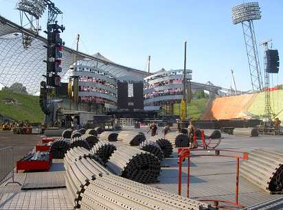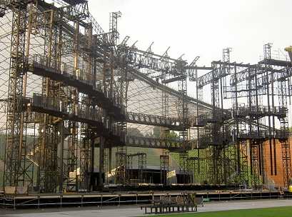 loaded-in and loaded-out for the show must come up and over the walls of